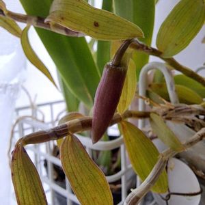 もうすこしで開花の蘭ちゃんたち 1️⃣下垂系デンドロビウム 育てるのがあまり得意でなく、今年も2つしか蕾がつかなかった🥹。 2️⃣今年の世界らん展からお迎えしたシレリアナ。香りも楽しみ