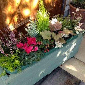 ちょっと気が早い事かもしれないけれど クリスマスにも使える寄せ植えしてみました😁 カルーナ コプロスマ カールレッド サルフレア ガーデンシクラメン 白Ⅹ赤 ヒューケラ リオ チェッカーベリー ハツユキカズラ ゴールドクレスト リシマキア オーレア タイム