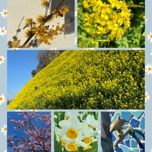 ナノハナ を見に。 今日はお天気も良かったのでドライブ🚗³₃ 昨年も行ったナノハナを見に行きました😊昨年より早かったので大洲の河川敷はまだ全然💧でも下灘駅近くは満開✨ ↖️お店に活けられたマンサク? ↗️ナノハナ ↔️斜面のナノハナ ↙️↔️↘️河津桜、スイセン、お店にあったイルカのカラン🐬 ⬇️河津桜 いいリフレッシュになりました。 明日から天気は崩れそうですね。春が近づいてます💕︎