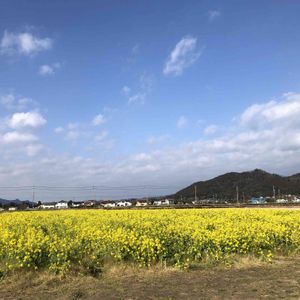 おはようございます😊 恒例の二宮・吾妻山からの菜の花、今年1月末撮影 広角レンズだと海と富士山、両方を背景に撮れました✌️