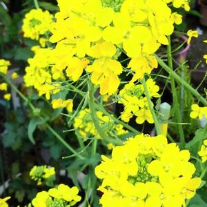 💛💚ナノハナ(菜の花)💛💚 [今日のお花] 春の花、菜の花が咲き出しました。 先日、散歩の時👵から頂いた菜の花の葉っぱをカラシ醤油で美味しく頂きました。 花の咲いた葉っぱを食べたのは初めてでしたが美味しかった。☺️