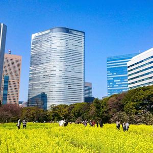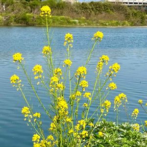 今日のお花「ナノハナ」📸💛🌿 東京の友人から頂いた浜離宮恩賜庭園のお花畑「菜の花」のpicです。🏙️🌲😄🌞✌️