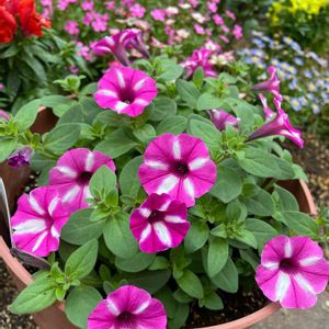 このペチュニア本当によく咲く❣️ 発色も良くて気持ちがパァーッと明るくなります☺️💕 後ろのアエオ寄せも元気です☺️