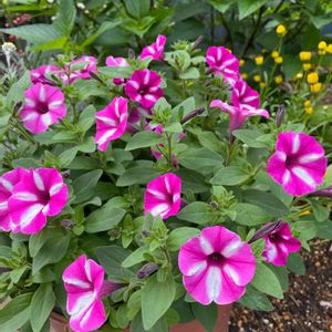 庭の鉢植えのペチュニア ラズベリージャム 🍆 (CAINZ×PW あふれ咲きペチュニア) 😳ナスカ PWとCAINZでコラボ開発されたペチュニアで 暑さ 雨 病気に強く育てやすいそうです 2020ジャパンフラワーセレクション秋審査会 受賞品種とのことです😳