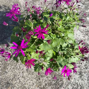 セネッティ レッド (木立セネシオ) キク科ペリカリス属 お花の少ない冬から春にかけてのびのびと花茎を伸ばして大きく咲き広がるようです お花は花径5cmほどの赤紫の艷やかな花色 サイネリア全般の花言葉 喜び 快活 元気 純愛 希望 華やかな恋 常に輝かしく
