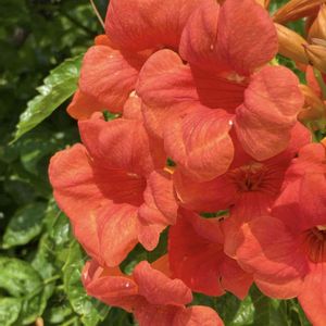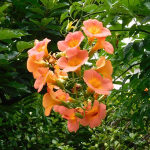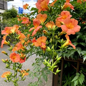 早くもノウゼンカズラ(凌霄花)が満開です。 つるが空をしのぐほど高く伸びるという意味があるといわれています✨ 夏の花🌼 このオレンジ色🟠の花を見ると、夏だ☀😵💦と感じます🎶😃