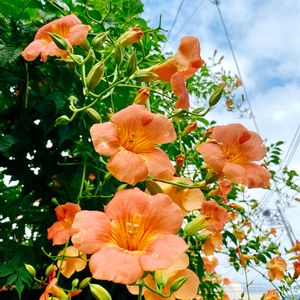 [今日のお花] 道端 ノウゼンカズラ(凌霄花)、ノウゼンカズラ科カンプシス(ノウゼンカズラ)属の落葉性のつる性木本、別名 トランペットフラワー 🌼花言葉 「栄光」「名声」「名誉な女性」