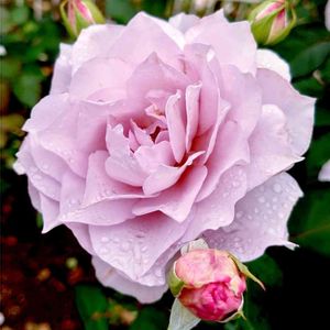 薔薇「令の風」🌹🌿💜 Rei no kaze 作出国 日本 作出 京成バラ園芸 発表年 2020 年 花色 ラベンダー 花形 波状弁カップ咲 花弁数 40~60 枚 花径 9~11 cm 樹高 1.5 m 樹形 直立性 芳香の強さ 微香 波状弁の花姿に、涼しげな風のイメージをかさねました。新しい時代の風を受けながら優雅に咲く様は、凛としてとても美しいです。直立性の大輪花は、柔らかなラベンダー色。トゲも少なく、わずかな香りもあります。 🏷水曜日は水色 🏷水滴の水曜日 🏷水曜ローズショー