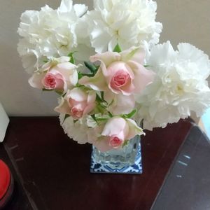 白いカーネーションだけでは寂しいのでバラ🌹も添えてあげました。