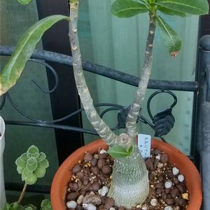 今朝のアデニウム アラビカム キョウチクトウ科 たまに水やり 買って2年 ちょっとやせてきました。 葉っぱは新しいのが出てきています。 冬もほぼお外でした。 やはり葉がキョウチクトウにそっくりですね。 パキポほどではないけど。 砂漠のバラが咲くまで元気でいてほしいなあ。