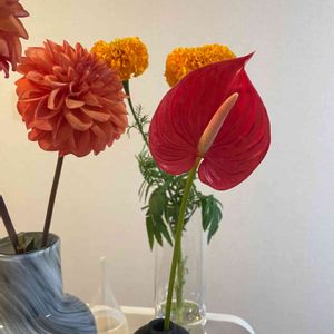 連れてきた🫶 アンスリウムいがい菊だな。笑 マリーゴールドも菊の一種なんですね。