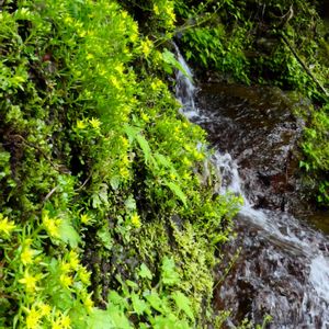 ヒメレンゲ[姫蓮華] 別名 コマンネングサ ベンケイソウ科マンネングサ属 山地の渓流のそばで咲いていました。 在来種で、関東地方以西~四国、九州に分布