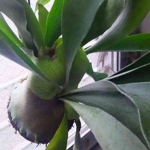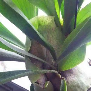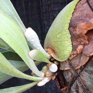 朝アップしたビカクシダの裏側の貯水葉です🐥表🆚裏どちらが勝つのか?