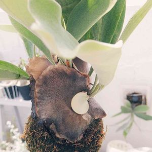 お久しぶりのビカクシダです。 お家(水苔の玉)を板から外し、増築しました! 慣れていないので果たしてこれが正解なのかわかりませんが、、 胞子葉は出てきてくれるのですが、中々新しい貯水葉が出てきてくれません。 早く綺麗な緑色の葉でお家を覆ってほしいです。 そうそう、 Green Snap 3周年記念おめでとうございます🙌㊗️ 記念のオリジナルチャームありがとうございました!😌
