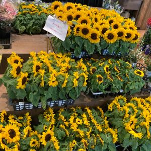 今日 スーパーの中のお花屋さんで 30cmくらいの🌻がズラリ 今日はとても蒸し暑い日だったのでちょっと暑苦しかったかなぁ💦 ところで皆さんのpicにいいねを押して❤️コメントの続きを読もうとすると文字が細くなってしまいます 私の機種だけでしょうか? 👓老眼の私は見にくいなぁ
