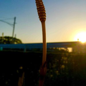 ツクシ (土筆) 多年生のシダ植物になります。ツクシとスギナは同じ植物であり、ツクシが「花茎と花」に相当し、スギナが葉っぱ🌿の役目をします。 シダ植物なので、繁殖は “胞子”です。 ツクシを「土筆」と書くとは、あっぱれである。✌ 3連投 -土曜の土手の日-