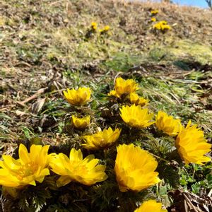 やっと咲いてくれました(^.^) 日陰育ち、我が家の福寿草 🏷️土曜の土手の日
