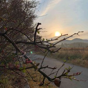 今日の朝陽。ボケの蕾がムクムク膨らんでいます。ボケの実さんも、まだ鎮座しています。あっ❗️大きな鳥が飛んでます。 鷺かしら。爽やかな朝です。 あれ?向こうから、よしくん🐕🦺が走ってくるのが見えます。なんで⁉️🤪🐕🦺💨💨