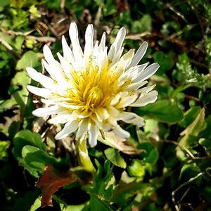 シロバナタンポポ (白花蒲公英) 関東地方以西で良く見られる、在来種のタンポポです。この地方でもこの時期に、土手や畦道に有って良く目立ちます。 花弁は白いですが、中心部は黄色く見えます。これは雄しべの色です。 -土曜の土手の日-