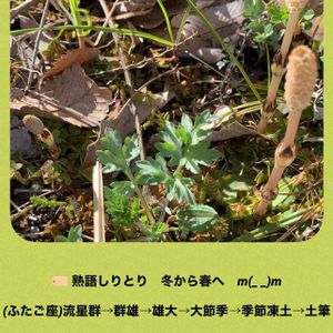 フキノトウ (蕗の薹) 山菜として、親しまれています。フキの花と言えるもので、雌雄異株です。雄花は黄白色、雌花は白い花を咲かせます。 これ☝は雄花の様だが・・・⁉️ 🤔 雌花は、そのまま茎が立っていきます。😲 -土曜の土手の日-