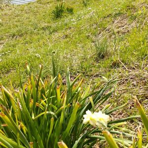 手前の水仙は終わり、、、 中央に見えにくいけど、ハナニラが群生、、、 土筆も生えて、、、 あらあら野生のリュウキンカもありますよ~(ここには写ってません💦) お尻をついて写してたら、チクチクしたの! あら、この川の絶滅危惧種のオナモミの種がついてるよ(@_@) 土手はおもしろいね(v^-゚)