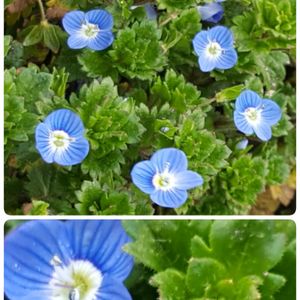 あはようございます☀ ちっちゃなちっちゃな青いお花のオオイヌノフグリさん。 緑の葉っぱの上にちっちゃな青い宝石を散りばめたようでした💙。 [美しく青きドヨウの日]に参加してください😊。