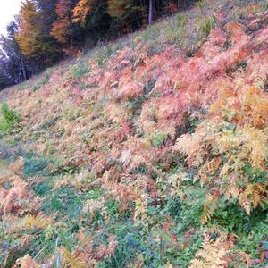 土手レベルの傾斜、うちのワラビ畑です。 茶色は全部シダですね。 シダの日にしようか… 土曜の土手の日…にしようか… 考えてたら土曜日になってました、タグは両方です。
