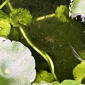 オタマジャクシ∈( ˙꒳˙ )見つけられないな…っとウォターマッシュルームと藻に埋まる池を覗き込むと ヤゴ?! シオカラトンボの子かな〜 ヤゴさん オタマジャクシ知りませんか?😅