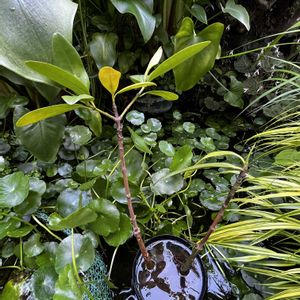 マングローブ サンルームで越冬後 しばらく外気に慣らして池に戻しました ウォーターマッシュルームを わしゃわしゃ かき分けてドボン🪴 ちょっと水が冷たいのが心配です 今年も何とか越冬が出来て良かった 葉っぱがポロッと落ちるたびにドキドキハラハラ