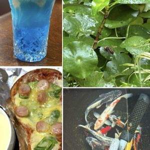 3日前まで5日間ずっと池の飛沫が上がるユキノシタが育つ場所で過ごしていた🐸ちゃん(右上) 2日前には姿を消していました(左下) 気温高いけど、この場所なら過ごしやすかったのでしょうか? 昨日からの雨というか台風🌀の気配を察知して隠れたのかな?🤔 それと毎日、水やりタイムに一瞬飛んできて池のウォーターマッシュルームに止まって去っていく大きめな蜂🐝࿆ 可愛い気もしますが、ちょっと怖いので困惑😨 いない隙にハチジェットスプレーしたけど来るんです 別のクビレ強い大きな蜂も見かけました😨種類分からず どちらも近くに巣がありそうで、そちらも気になります😞 台風🌀の日に定期通院🏥予約が被るのに慣れっこな私😂 この時期のあるあるです 幼い頃から雨女(笑) 雨風が弱まったタイミングで早めに出発し現地到着 お茶して時間潰し チョコケーキとドリンクバー☕️🤭