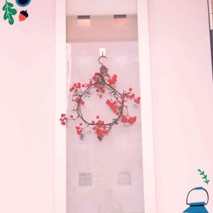 サンキライの枝を丸めて作っただけのリースε-(´∀`; ) 左奥のリースはシンフォリカルポスの原種が手に入った時に作ったリースです 分かりづらいと思いますが赤い小さな実がびっしりついてます♥️