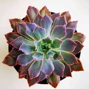 下葉がカリカリしてき、窮屈そうに見えたので、昨晩やっと植え替え エッジのフリフリがお気に入りの子 購入時より緑色が強くなってきました💜➡️💚