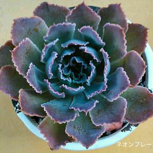 ガーデンセンター華遊さんで多肉植物も買いました。 エケベリア属のネオンブレーカーズで、葉の蛍光色の 発色とフリルに特徴があります。