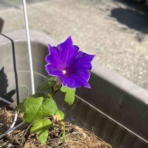 桔梗咲きアサガオ♡ 草丈10cmで咲いてました\\(*'▽'*)// 冬の準備のため、先週引っこ抜いたアサガオの 蔓の根元に隠れてた、こぼれダネで育ったコです♪