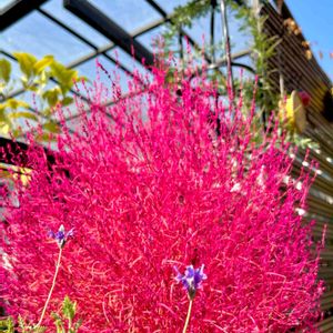 レースラベンダー&コキア♡ 先週からポツポツ咲き始めた 季節外れのレースラベンダーさん(*´∇`*)♪ 真っ赤なコキアをバックにカメラ目線です♡