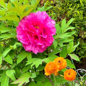 ボタンとラナンキュラス 仲良しさん♡〜(*´꒳`*)〜♡ おしゃべりしてるみたいでしょ♪