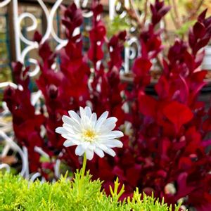 無事に夏越しできた♡マーガレット 1番目のお花がピョコンと咲きました♪ まだまだがんばる‼︎ 真っ赤なアルテルナンテラとᕦ(๑❛ᴗ❛๑)ᕤ