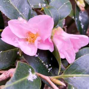 裏庭の椿♡たくさん花をつけてくれてます♪ 昨日と今日は、1日中強風と小雪が舞っています。 南国(?)九州にも、年に数回は雪が積もることがあるんですよ〜(〃ω〃)〜