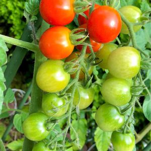 ミニトマト 今年は豊作で〜す\(*^○^*)/ コラコラ欲張って 同じ枝に2房つけてるのはダレだ〜⁉︎