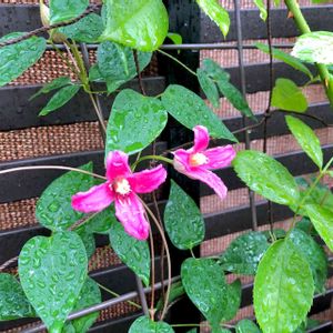 クレマチス・プリンセスダイアナ 切り戻ししてたコが咲き始めました╰(*´︶`*)╯♡ 台風の… 雨ニモマケズ♪