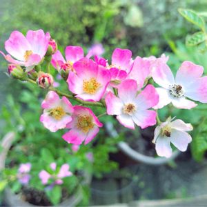 ミニバラ わが家で1番小さくて 1番元気なバラさんです(*゚▽゚)ノノ 6号鉢にお住まいです♪ 春先にホムセンからお連れしました。 名札は付いていませんでした。 葉っぱの元気さを見ても分かるとおり 寒さ暑さ雨にも乾燥にもびくともせず 次々と咲いてくれる強いコです♪ ショッキングピンクの花色が 少しずつ褪せてきて 最近は大人っぽく(?)なってきました(*´꒳`*)
