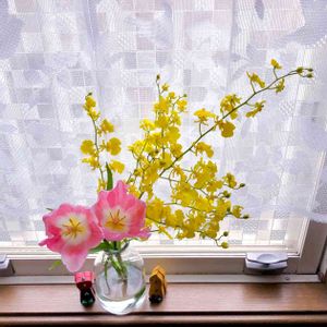 窓辺のチューリップ&オンシジューム 暖かい陽射しを浴びて 気持ち良さそうです╰(*´︶`*)╯♡