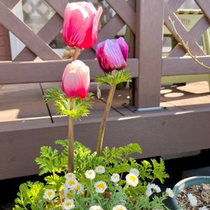 アネモネ&花かんざし♡ チューリップみたいな姿で まだお目覚め前のアネモネさん ♪(*´꒳`*)♪