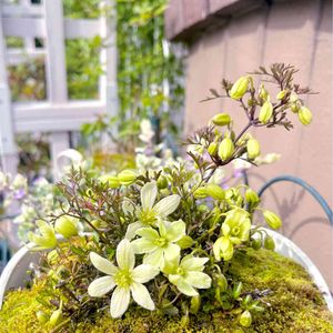 クレマチス♡ペトリエイ なぜかコケさんと同居して 盆栽みたいになってます♪(*^▽^*)♪