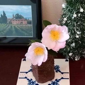 おはようございます。うちの、山茶花が咲きました。 鉢植えで蕾も沢山つきました🎉。 キュンキュン乙女倶楽部「寄りそって」 令和ランデブー🍀参加します〜🎶