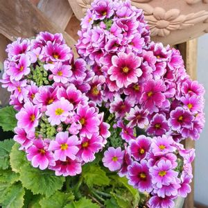 プリムラ ポンポンラパン 昨日カリブラコアの去年のピンクキッズ のプラ鉢に土を新しくして一緒に植えました。