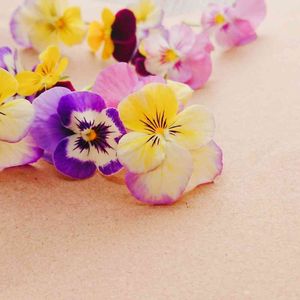 🌼ビオラ、パンジー🌼 今日のお花遊び🌷 ひとつしぼんでるけど🤭 なんだか美味しそうにみえるな~😆同じ花ばかりすみません。