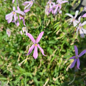 パラッと咲いてる イソトマが涼しげ🎐 暑さを感じさせない ピンク🩷🌿はあまり 見かけないけど今年は いつまでも咲いてます ハツユキカズラも 元気🏋🏻♂️🏋️🏋️♀️