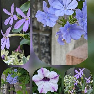 🍀おはようございます🍀 ブルーウィング💙🩵 冬越しの挿し芽株も咲いています♬ ②親株も♪₍๐•ᴗ•๐₎ ③宿根フロックス ジュニオールダンスも 花茎を✂️…後、再び開花中です🎶 ④こぼれ種からのイソトマも 酷暑に負けないでね😊 ⑤ビタミンカラーのイトバハルシャギクは 長く咲き続けています💛