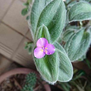 トラディスカンチア シラモンタナ(白絹姫) この名前、絶対覚えるの無理‼️ ツユクサ科ムラサキツユクサ属 元は、観葉植物🌿株全体が白色の軟毛に覆われているので花よりそっちがメインと知りました😅